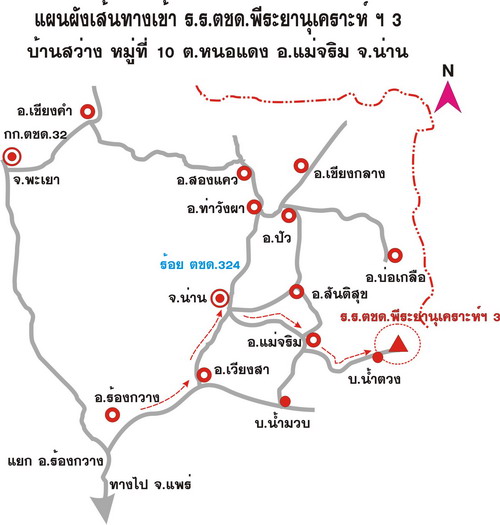 - สามารถใช้รถยนต์เดินทางขึ้นโรงเรียนได้สะดวก ยกเว้นฤดูฝนต้องใช้รถยนต์ขับเคลื่อน 4 ล้อ |